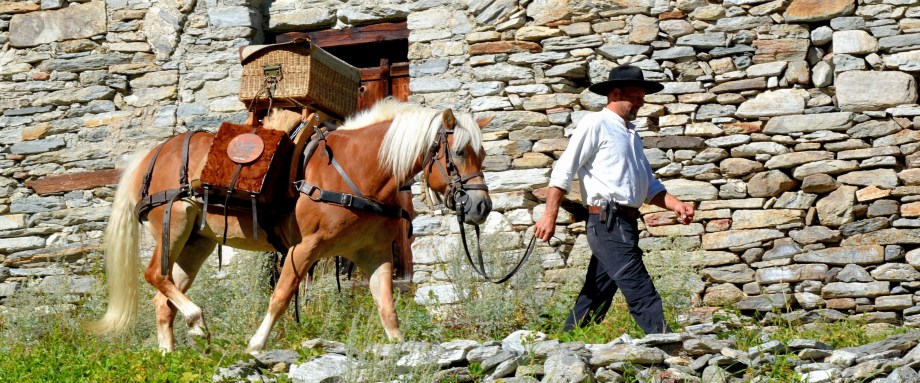 Seit 2013 ertönt jedoch wieder der Hufschlag der Saumtiere, das Rufen der Säumer und das Lachen der Gäste auf dem Stockalperweg.